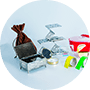 エイジ化成では、プラスチックをはじめとした様々な素材を使って工業部品・物販商品やSP商材・テーマパークで販売されている誰もが知るキャラクターグッズまで幅広く手掛けています。